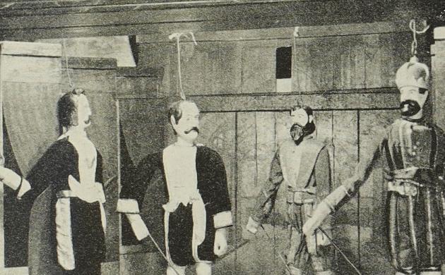 Awel, da zén simpel grote houte mannekes gemokt met zo wa afgedankte roemmel en twee verroeste betonijzers deuraan, anders kunnen ze natuurlak nie boegeere. Ze zén aawer as Bellege en ze komen uit tejaterkes in de kelders van de armste kotees van ’t Stad. Marjonette van het volk, veur het volk. Mor niet veur gevuulig oorekes.