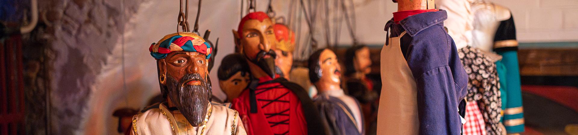Zie je de poesjenellen graag in actie? Combineer onze expo dan zeker met een voorstelling op wandelafstand van de Erfgoedbibliotheek.