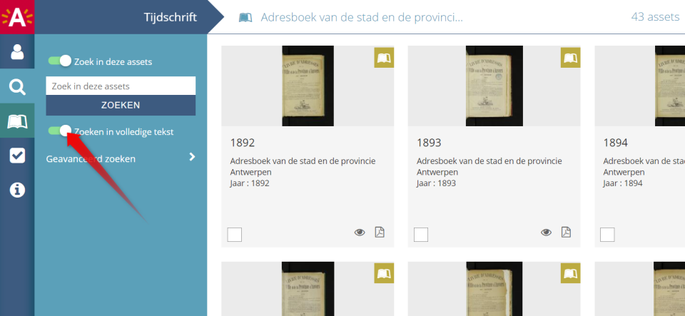 De Ratinckx-adresboeken worden volledig digitaal ter beschikking gesteld in het DAM-systeem van de Stad Antwerpen. Het is perfect mogelijk met eenvoudige zoekopdrachten de grote hoeveelheid aan informatie in deze adresboeken vrij te raadplegen. Vergeet daarvoor niet de optie "Zoeken in volledige tekst" aan te klikken!